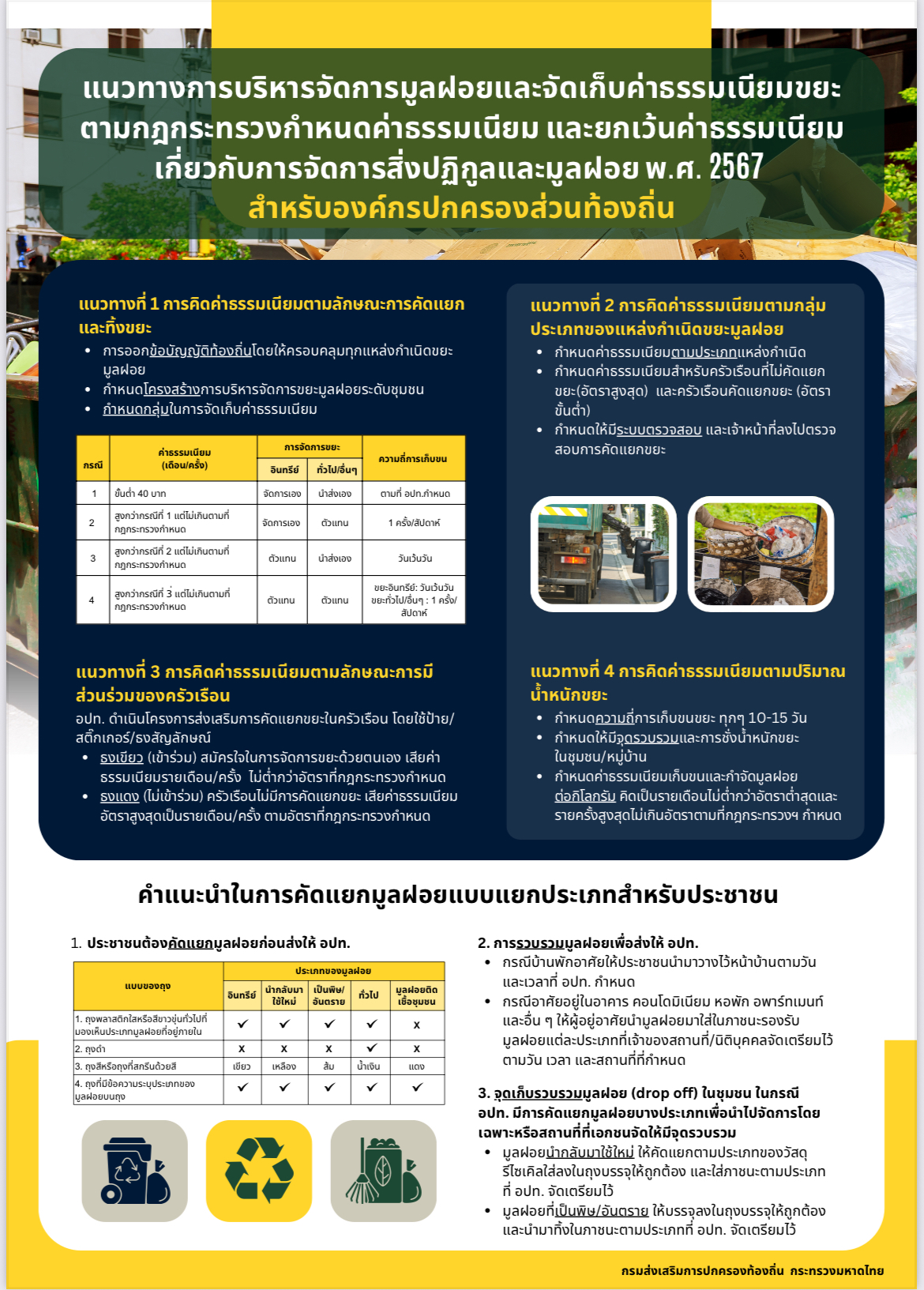 แนวทางการบริหารจัดการมูลฝอยและจัดเก็บค่าธรรมเนียมขยะตามกฎกระทรวงกำหนดค่าธรรมเนียมและยกเว้นค่าธรรมเนียมเกี่ยวกับการจัดการสิ่งปฏิกูลและมูลฝอย พ.ศ.2567 สำหรับองค์กรปกครองส่วนท้องถิ่น