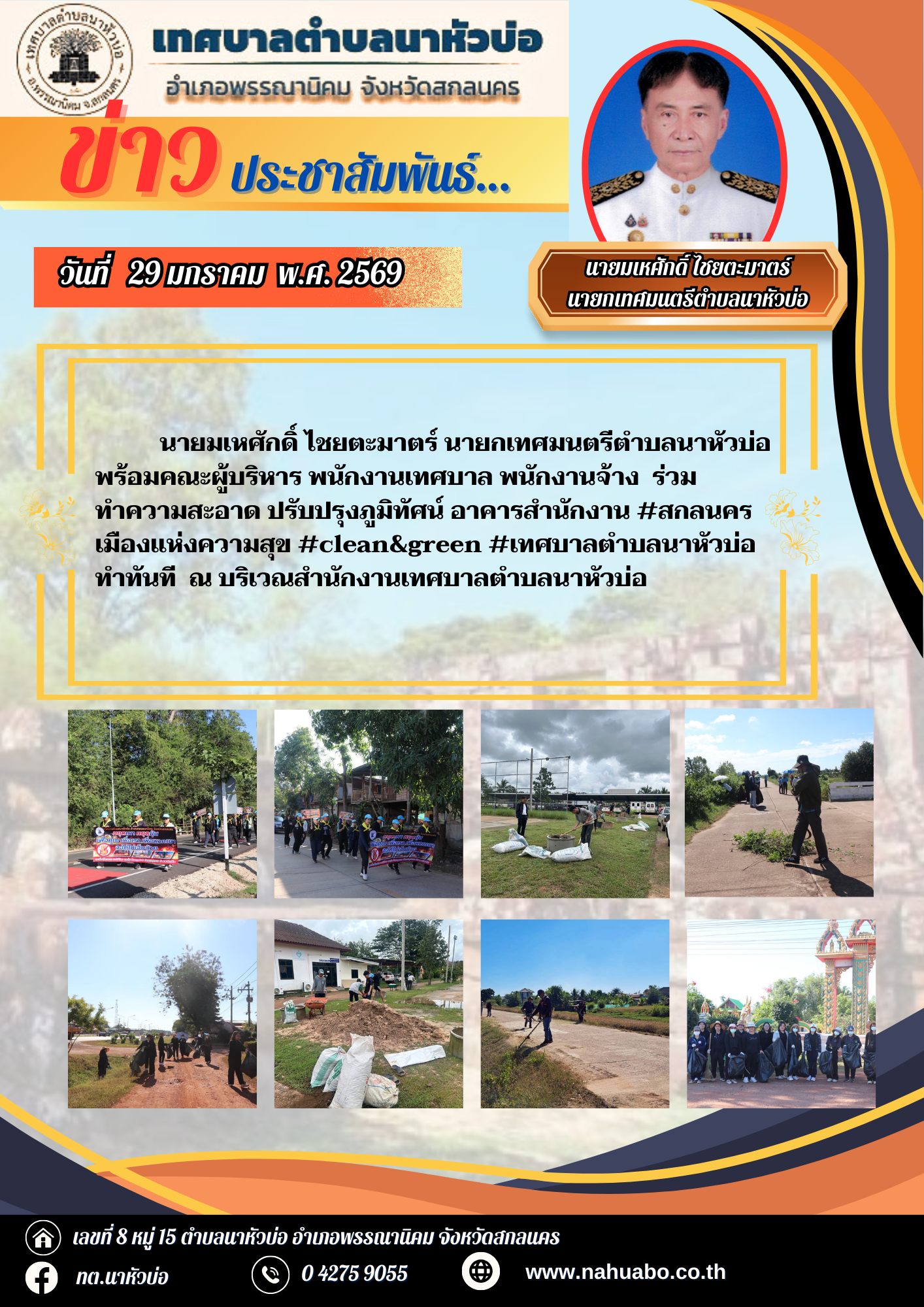 ประชาสัมพันธ์ เรื่อง ทำความสะอาด ปรับปรุงภูมิทัศน์ อาคารสำนักงาน #สกลนครเมืองแห่งความสุข #clean&green 0 โดย ผู้ดูแลระบบ เทศบาลตำบลนาหัวบ่อ on 29/01/2026 ข่าวประชาสัมพันธ์, จดหมายข่าว นายมเหศักดิ์ ไชยตะมาตร์ นายกเทศมนตรีตำบลนาหัวบ่อ พร้อมคณะผู้บริหาร พนักงานเทศบาล พนักงานจ้าง ร่วมทำความสะอาด ปรับปรุงภูมิทัศน์ อาคารสำนักงาน #สกลนครเมืองแห่งความสุข #clean&green #เทศบาลตำบลนาหัวบ่อทำทันที ณ บริเวณสำนักงานเทศบาลตำบลนาหัวบ่อ แชร์ : Twitter Facebook Pinterest LinkedIn Tumblr Email